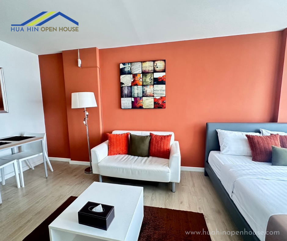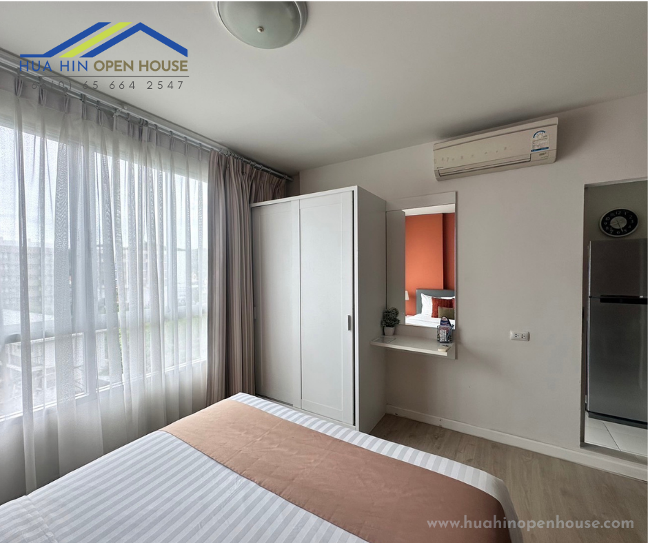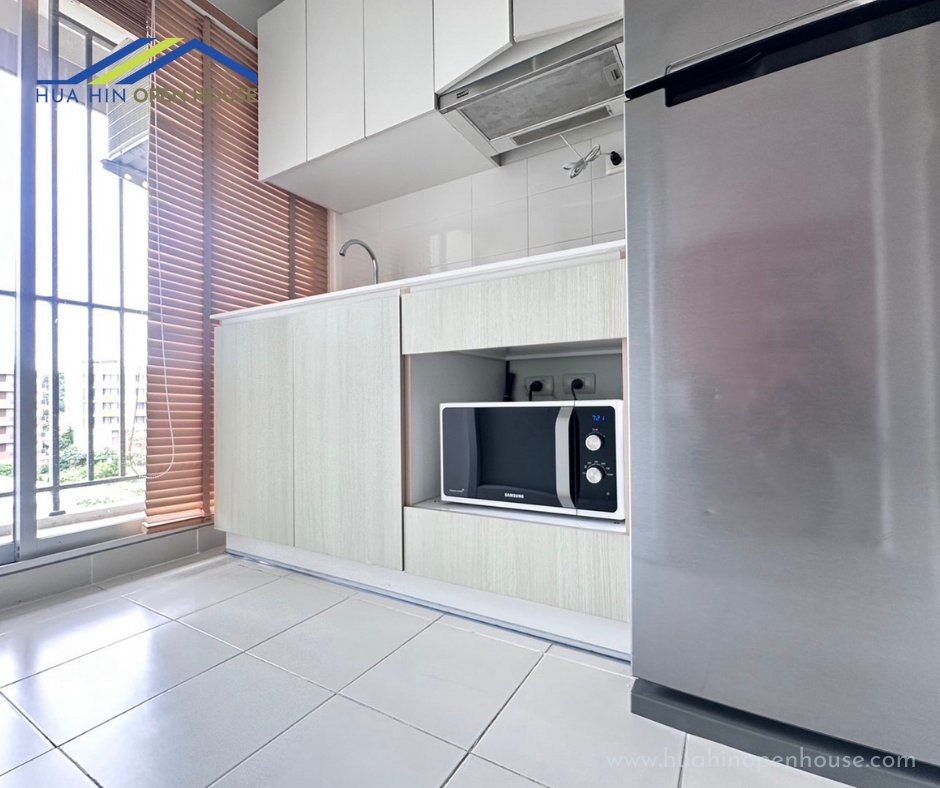 This condo is located just 500 meters from Khao Takiab Beach in Hua Hin, making it an ideal destination for tourists who enjoy staying in this popular area. The easy beach access is a major draw for residents and visitors alike.