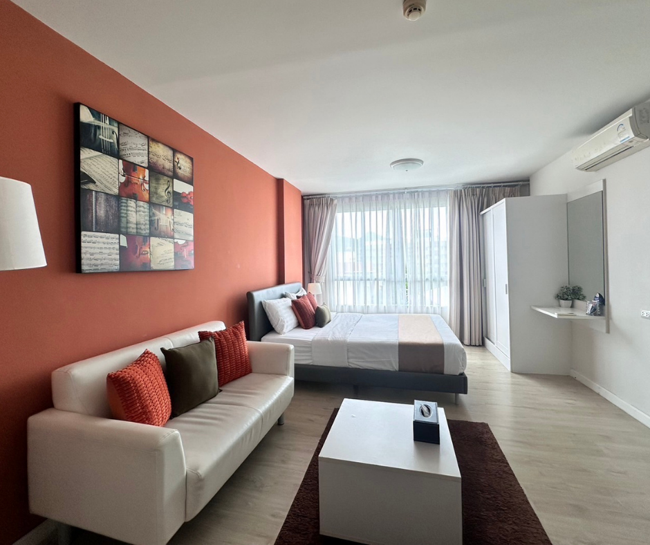 The condo unit we are showing you is fully furnished and newly renovated, featuring a balcony with city and mountain views. It’s ready to move in and presents a great investment opportunity with a potential rental income of around 10,000 baht per month.