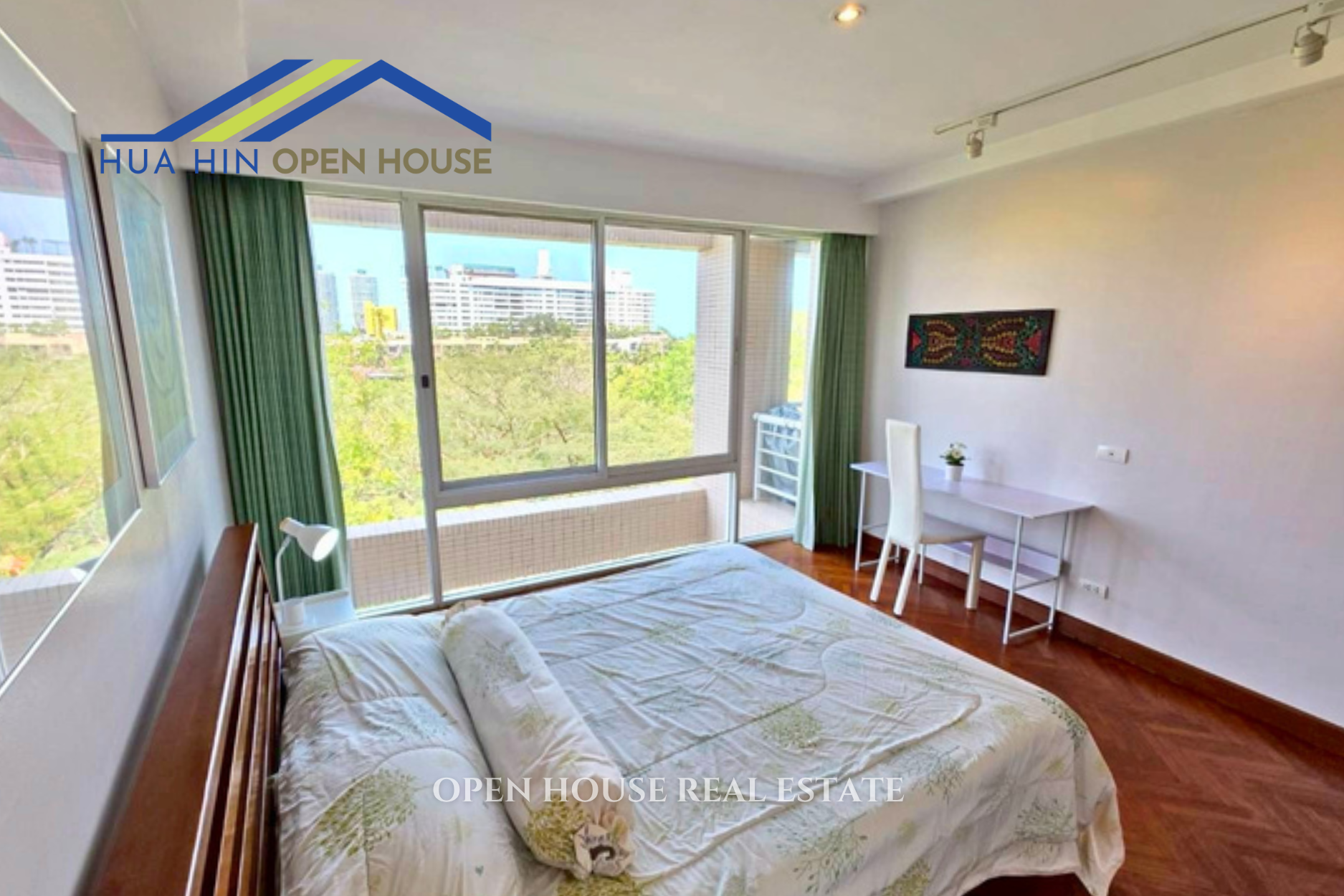 Step inside this well-designed condo and experience the open and airy feeling. The living and dining area opens onto a balcony with green garden views, letting in natural light and sea breeze. The master bedroom includes an ensuite bathroom, small walk-in closet, and a private balcony. The second bedroom features a large window with serene green views and easy access to the shared bathroom. Fully furnished and move-in ready, this condo is ideal for residential living or long-term investment in Hua Hin.