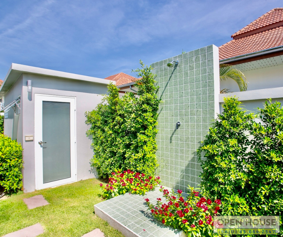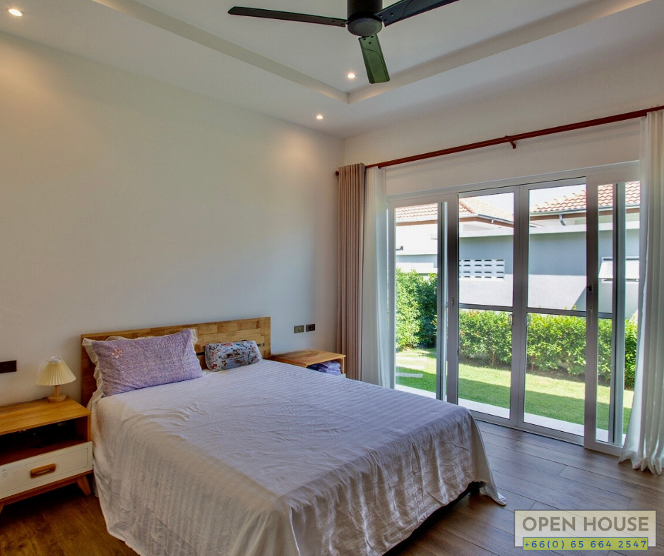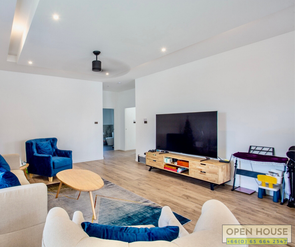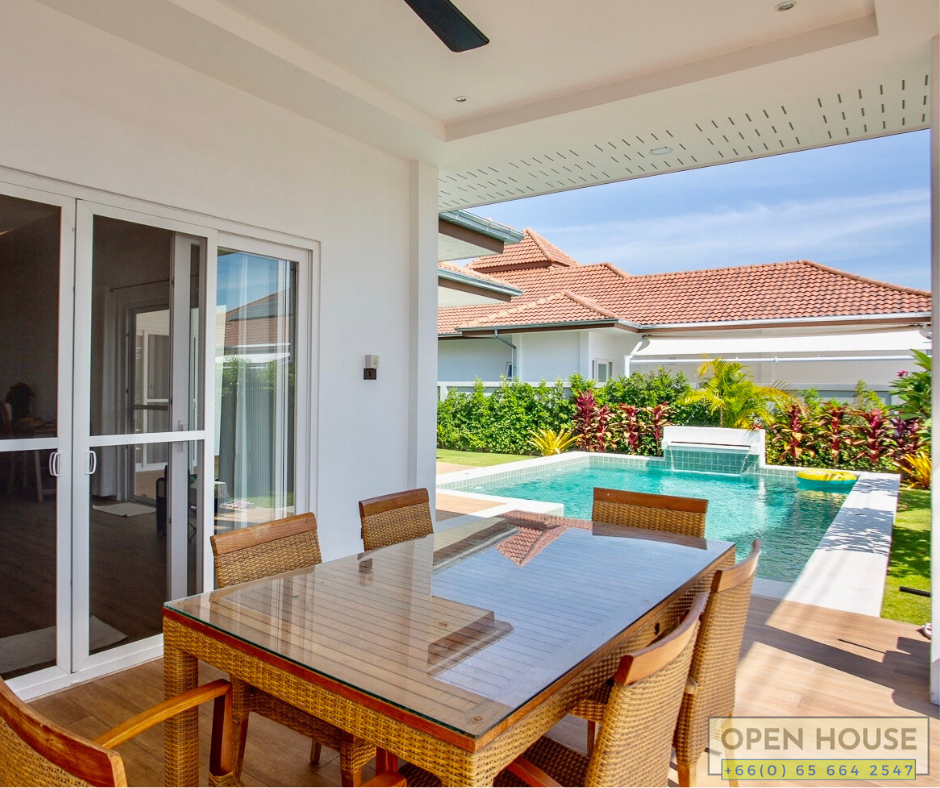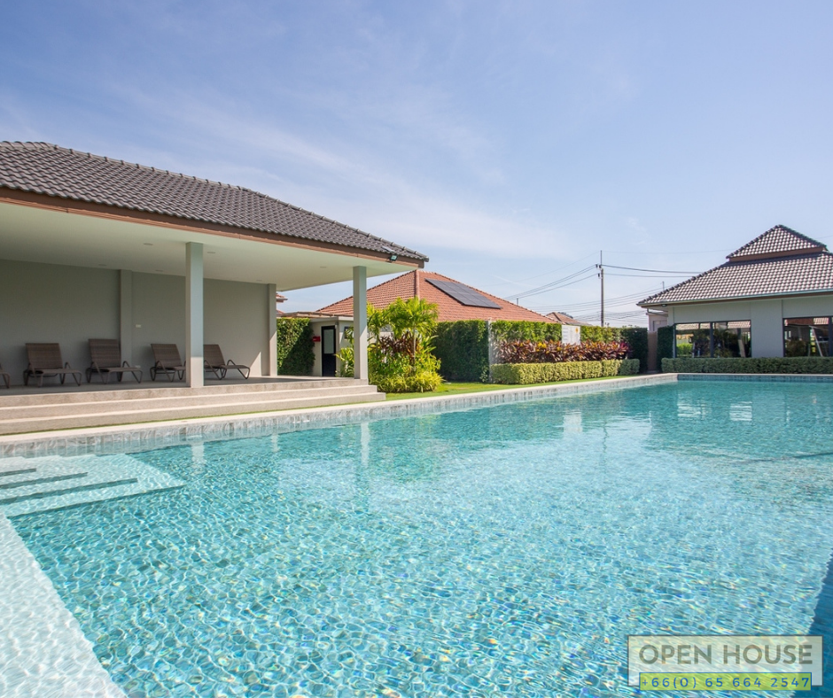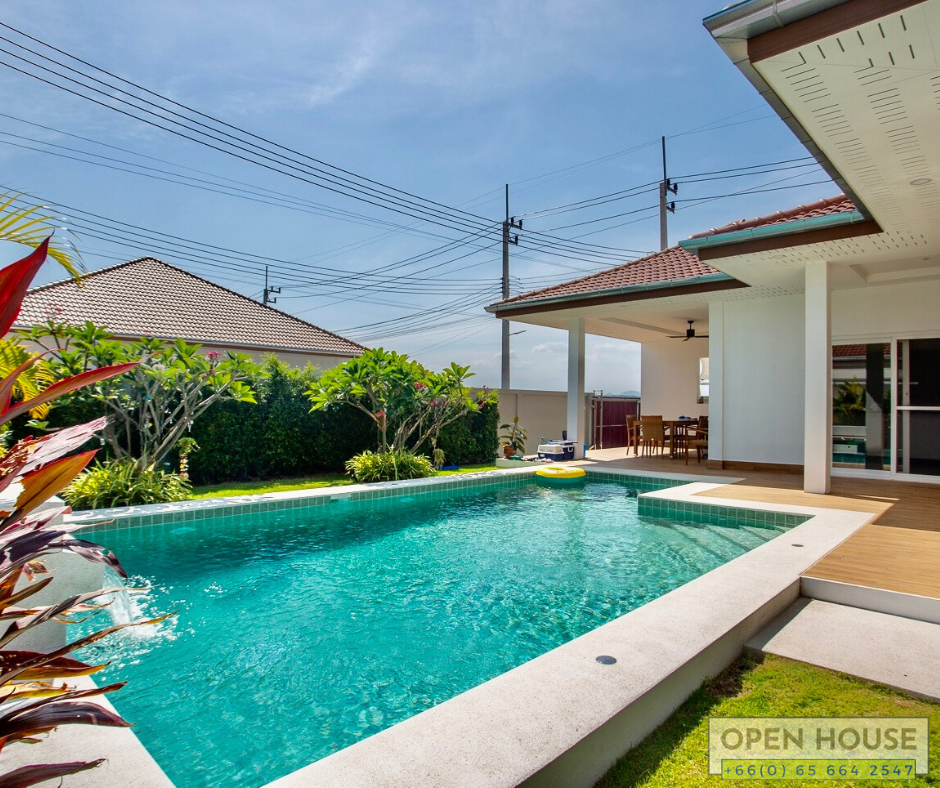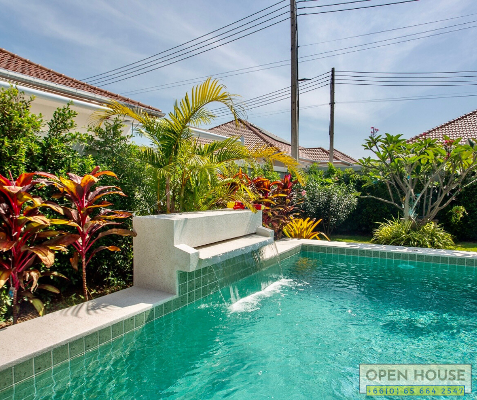 When it comes to excellent projects in Hua Hin, one not to be overlooked is the Mali project by Orchid Palm Homes. We have a new house completed just last year in the Mali Lotus project. This particular house is at a corner location with spacious open areas, a swimming pool, and garden around the house.