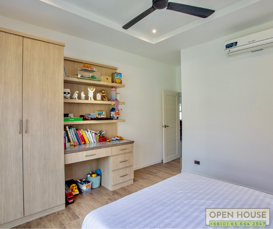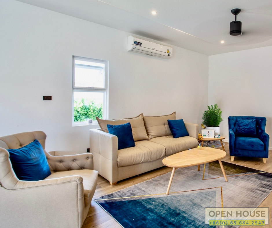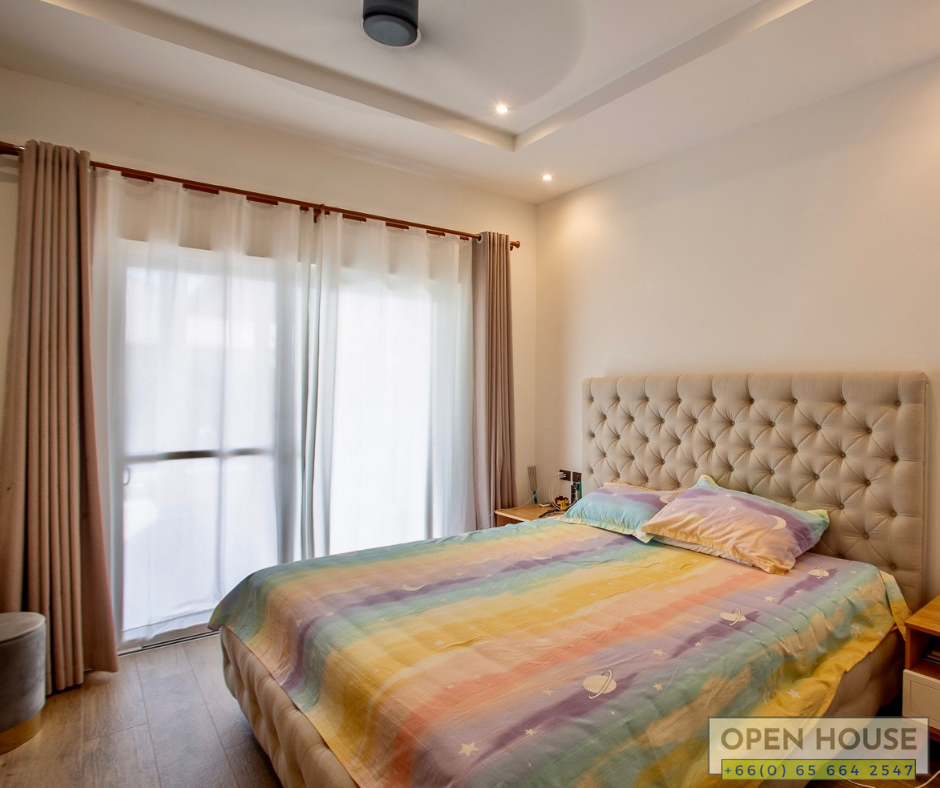 For those in search of a home in the Mali project, this house is currently priced at 7.5 million baht. It offers a beautiful and high-quality residence. If you’re considering it as an investment for rental purposes, the rental price is estimated to be between 45,000 to 55,000 baht. The project itself features a swimming pool, fitness center, 24hr. security, and a shuttle service to and from Hua Hin town. The location is in Hua Hin Soi 112, just 10-15 minutes away from the Bluport shopping center.