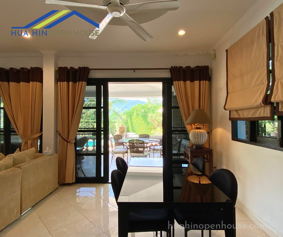 Located near Central Hua Hin, Soi 102, and just minutes from restaurants, bars, and Bluport Shopping Mall, this 3-bedroom pool villa offers stunning mountain views in a serene development setting. With easy access to Hua Hin’s main beach and city center, this villa is ideally located for enjoying both convenience and tranquility. The spacious outdoor area features a saltwater pool with jacuzzi, a sunbed terrace, and a lush garden, creating a peaceful retreat.