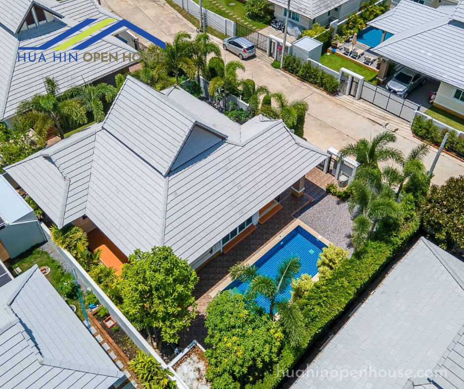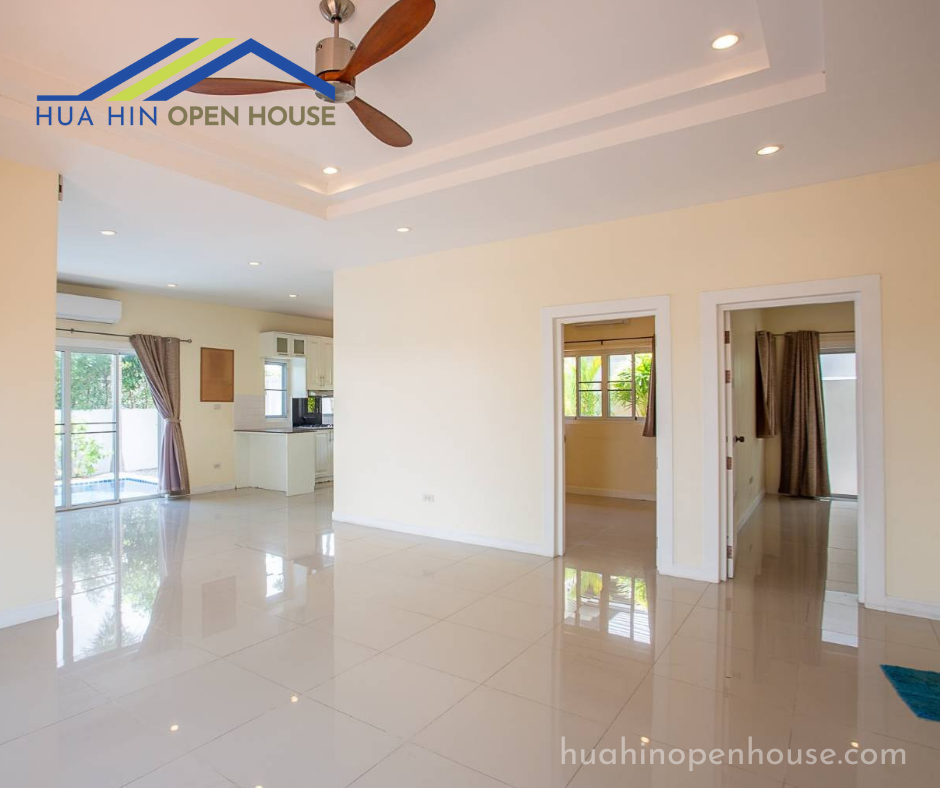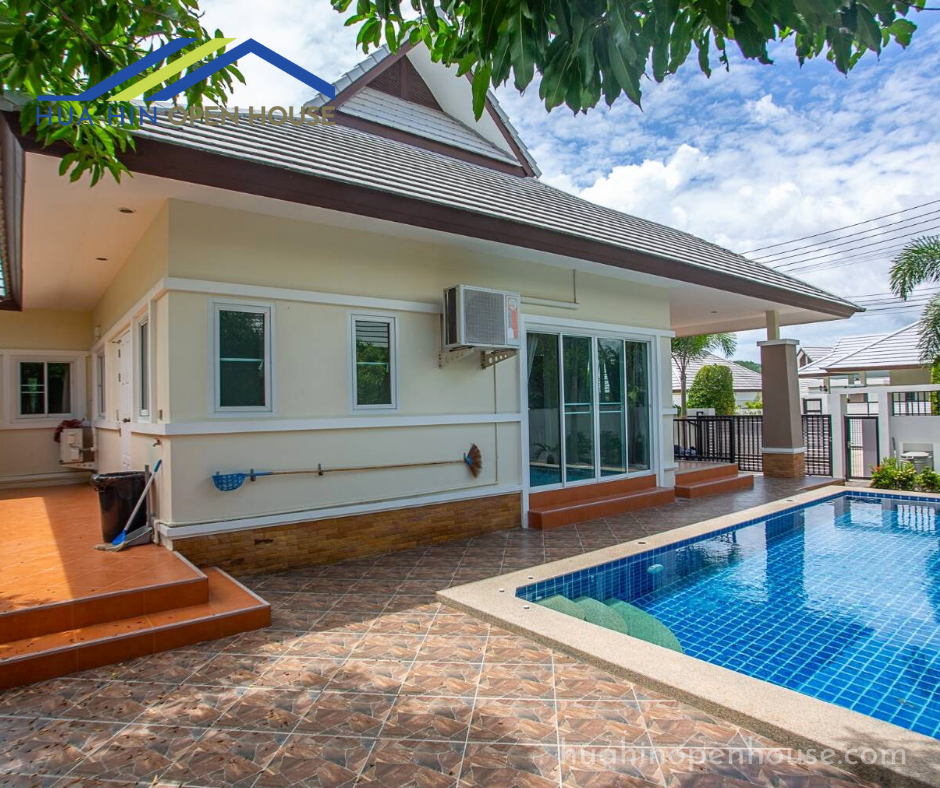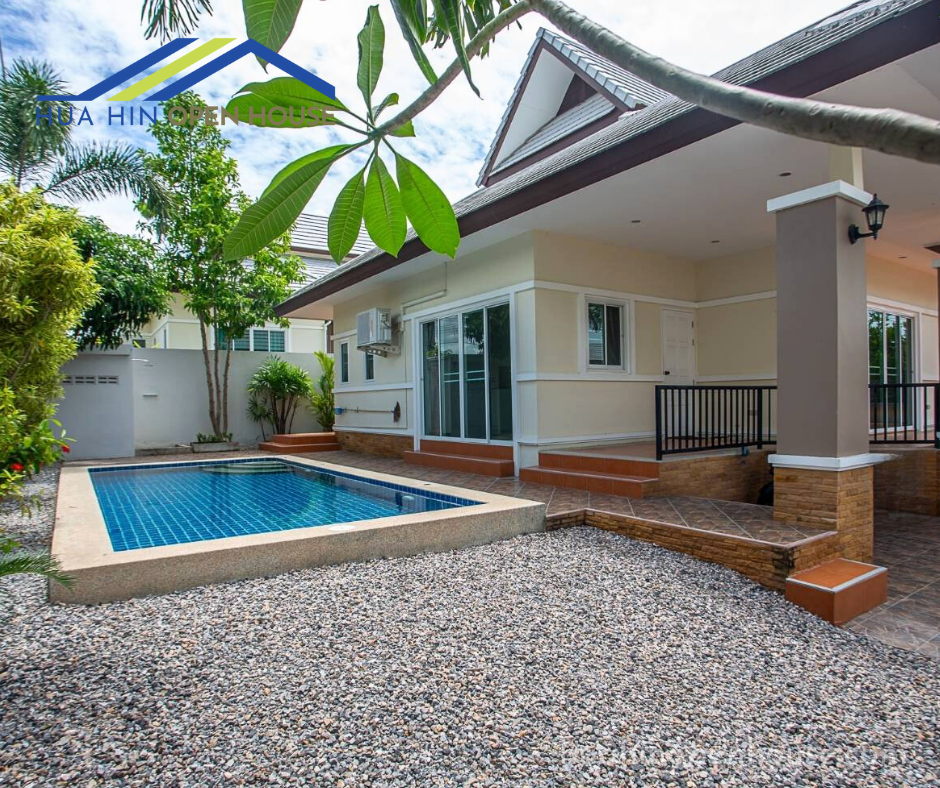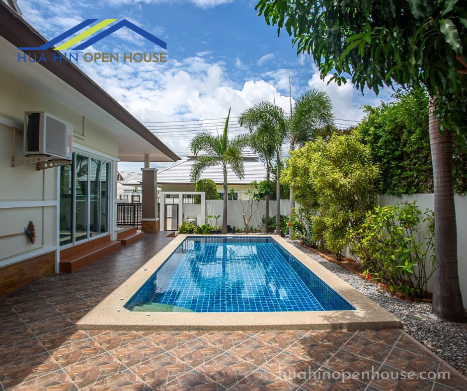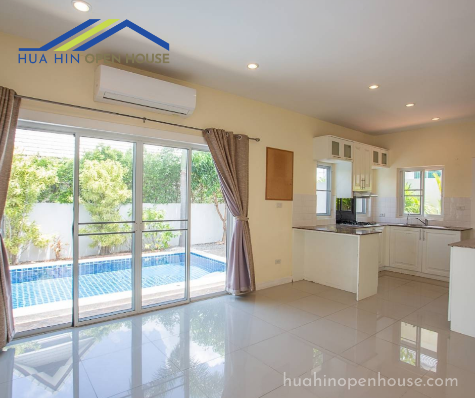 This unfurnished 3-bedroom pool villa, located in the Emerald Scenery project on Hua Hin Soi 112, offers a spacious and modern living environment. Ideal for families or anyone looking to personalize their living space, this property features a 3×7 meter swimming pool and ample outdoor space.