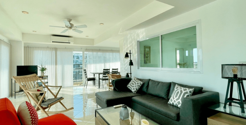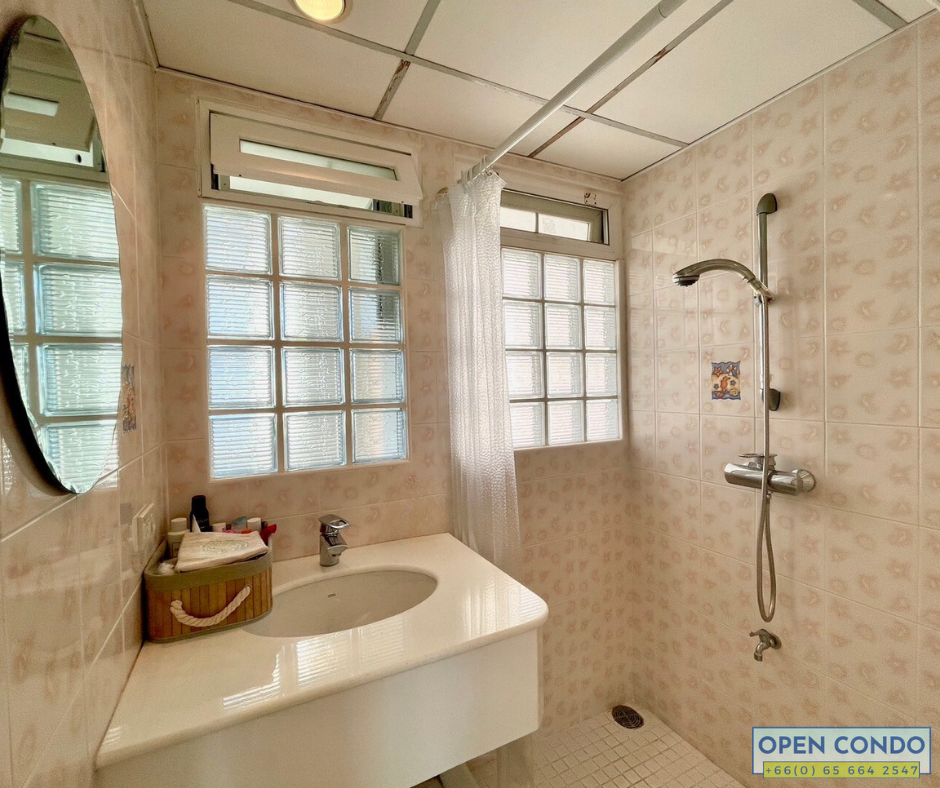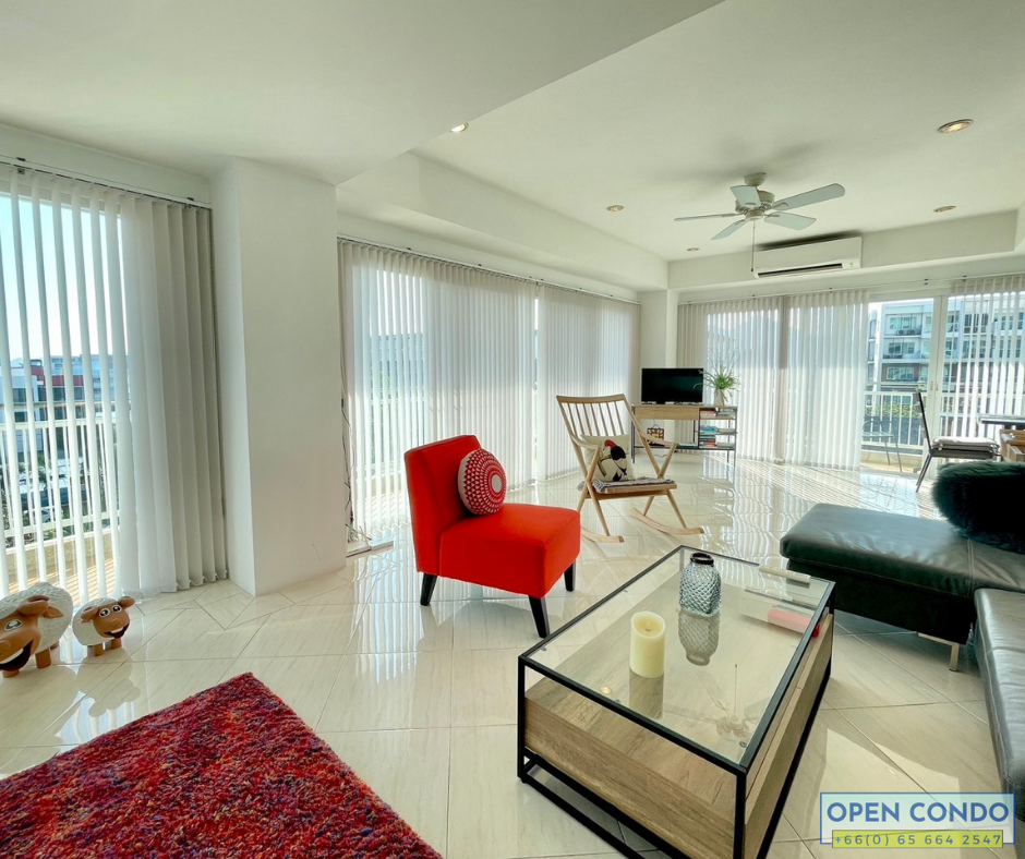 This unit is part of Jamjuree Condominium, which is positioned at the corner, allowing for expansive views from the balcony. Consequently, the ventilation is good, and it receives ample natural light from outside. The interior space is also spacious and well laid out, with interesting layouts. There’s a long continuous balcony connecting all rooms.